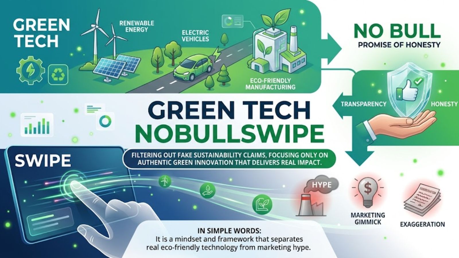 Together, Green Tech Nobullswipe means filtering out fake sustainability claims and focusing only on authentic green innovation that delivers real impact.